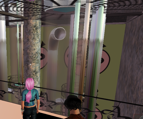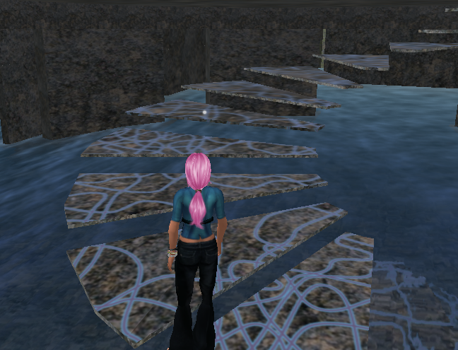 Rod Humble of Linden Labs recently described the Virtual World as “creative space”. Jeddin’s Underground City sim on Second Life is a creative space melding the ideas of Descending Road author/creator with 3D artistry and SL scripting to make what the artist describes as “digitally amplified literature”.