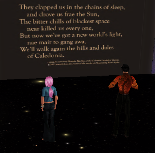 Dana Paxson, Jeddin Laval on SL, has spent much time writing, building and scripting to create a space that aligns to his writings and to amplify the experience beyond what we are accustomed to in traditional literature.