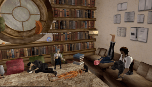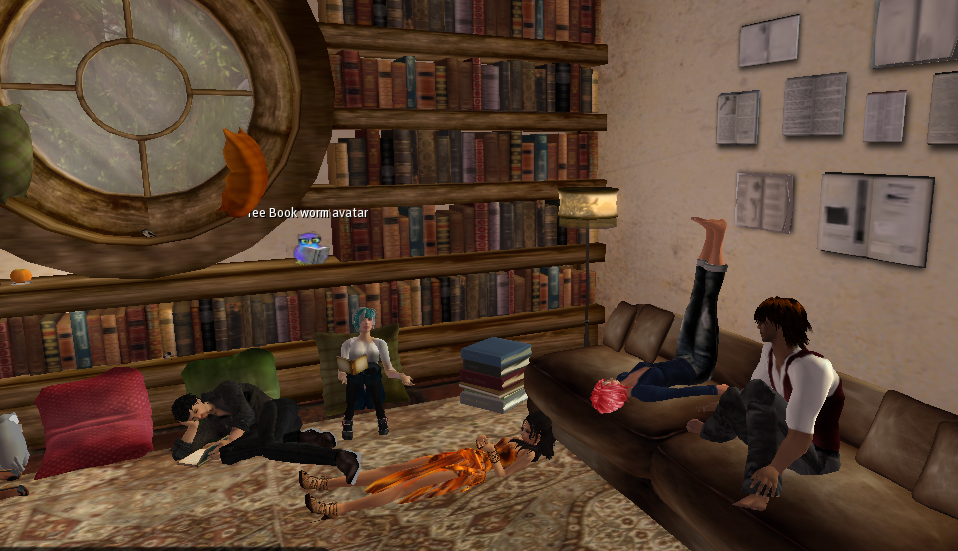 Members gather in a virtual reading room to sit and relax while discussing the book, in text chat (voice optional). The avatar poses at the Albatross are particularly fun, being somewhat fidgety I change positions throughout the hour. It’s fun to move about and get your avatar comfortable. Discussion are silly to academic; result is that we all read and have an opportunity to share our reflections.