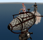 Participating in a Virtual World does take a little getting used to – I entered Virtual Worlds later than many (2009) with 3 of my colleagues, making it easier and often amusing as we spent time stumbling about underwater, losing hair and bumping into walls. Since those days 2 1/2 years ago 1 colleague has met her true love in SL and got married (for real), another has young children and little time for Virtual World activity in the evenings, and the third is honing her leadership skills in various RP sims. Once I “cleaned up” and learned to walk and talk in the virtual world I was ready to explore. I learned to wield a sword, fly in space, surf epic waves and pilot a steam punk spacecraft. I found multiple grids and visited as many as I could, talking to almost everyone I encountered.