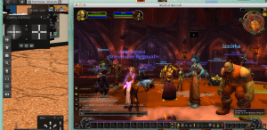 Second Life (on the left) provided voice chat while our MOOC activity unfolded in WOW (right screen).